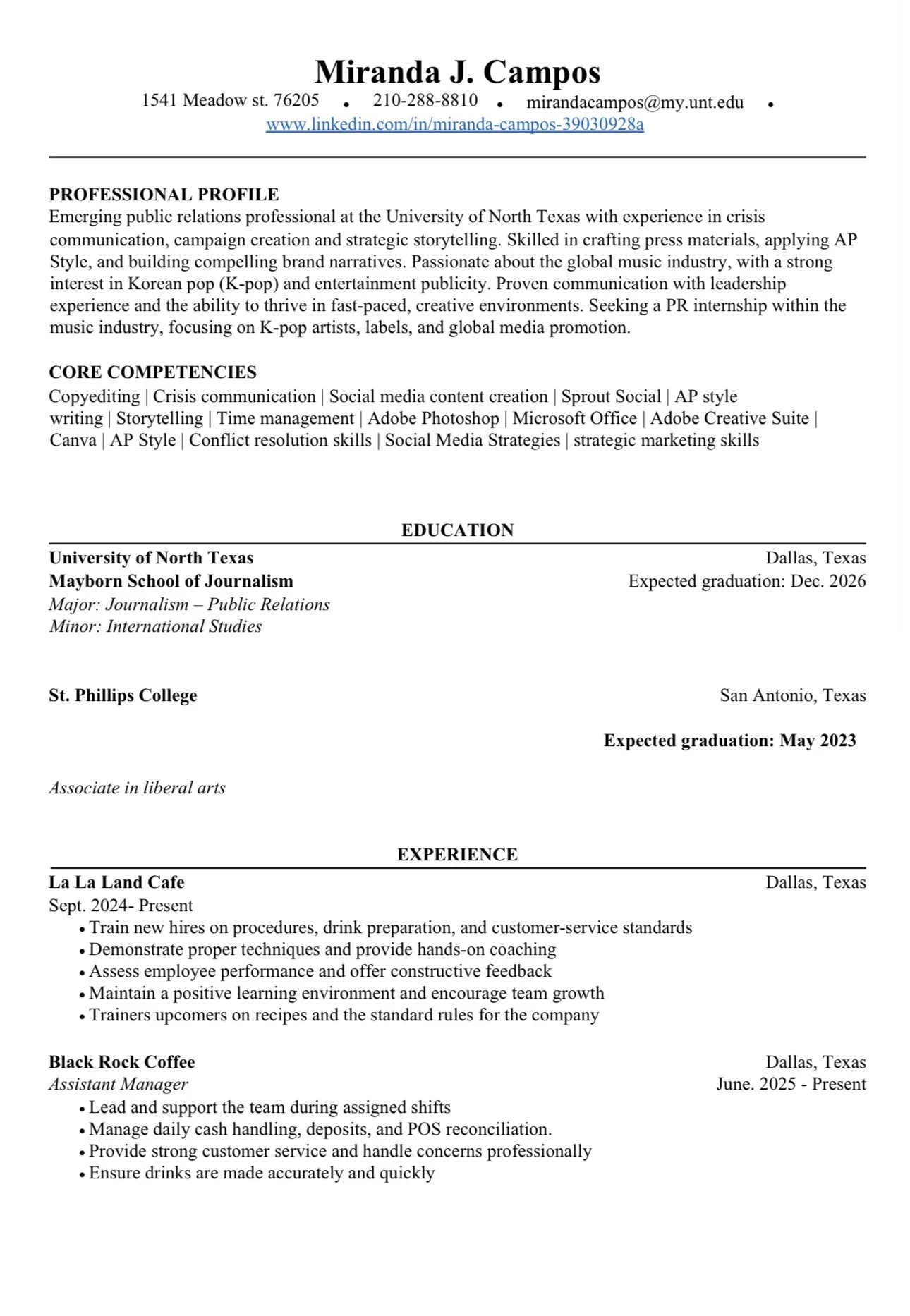 - Barista/Assistant Manger/Trainer at Black Rock Coffee company (June 2025 - Present)