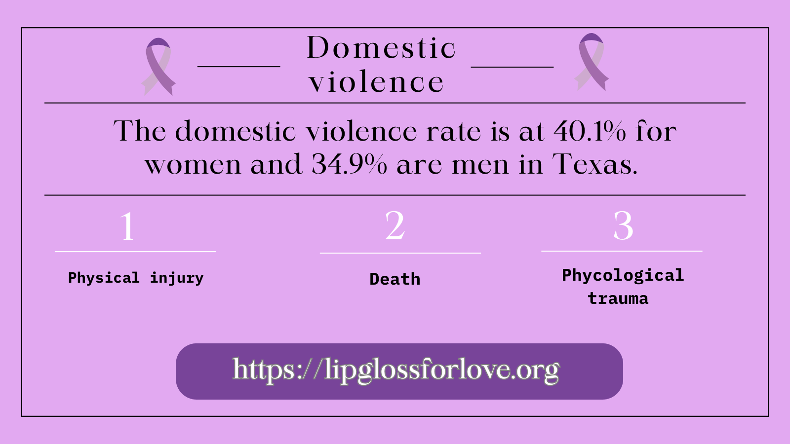 In Texas, 40.1% of women and 34.9% are women who experience domestic violence . Because abuse may affect anyone, regardless of background, we also offer assistance to men who are victims of domestic violence.